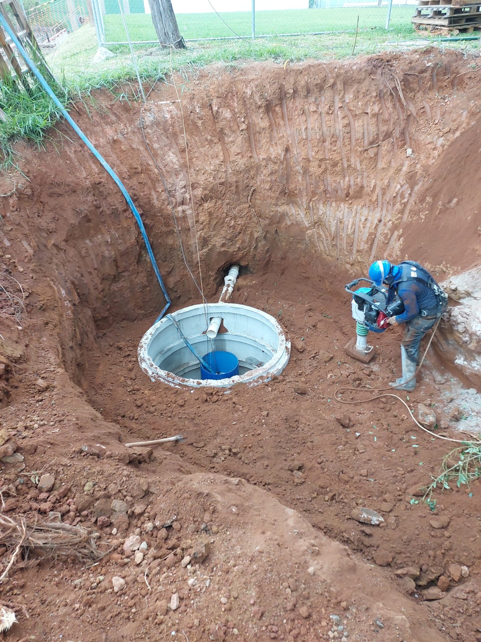 - Estação Elevatória Compacta Versati 1700L, equipada com 6 prolongadores, permitindo atingir a profundidade necessária para substituição da fossa existente.