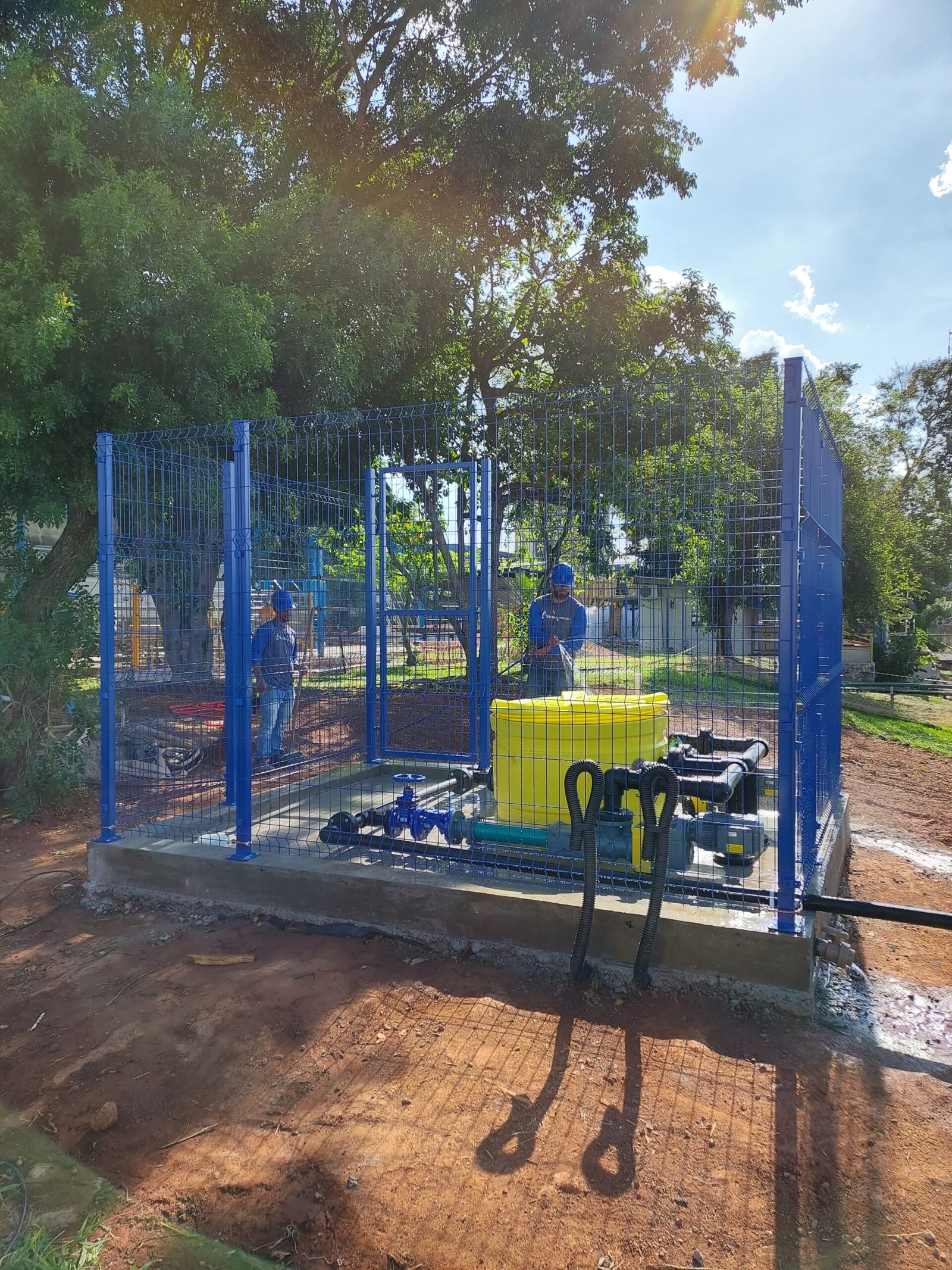 A instalação foi realizada pela Atta Engenharia, envolvendo execução de obra civil, posicionamento da estação elevatória, interligações hidráulicas de entrada e saída, instalação das bombas, válvulas e registros, instalação da rede de recalque, além de todo acabamento no entorno da elevatória e gradil para restringir a área.